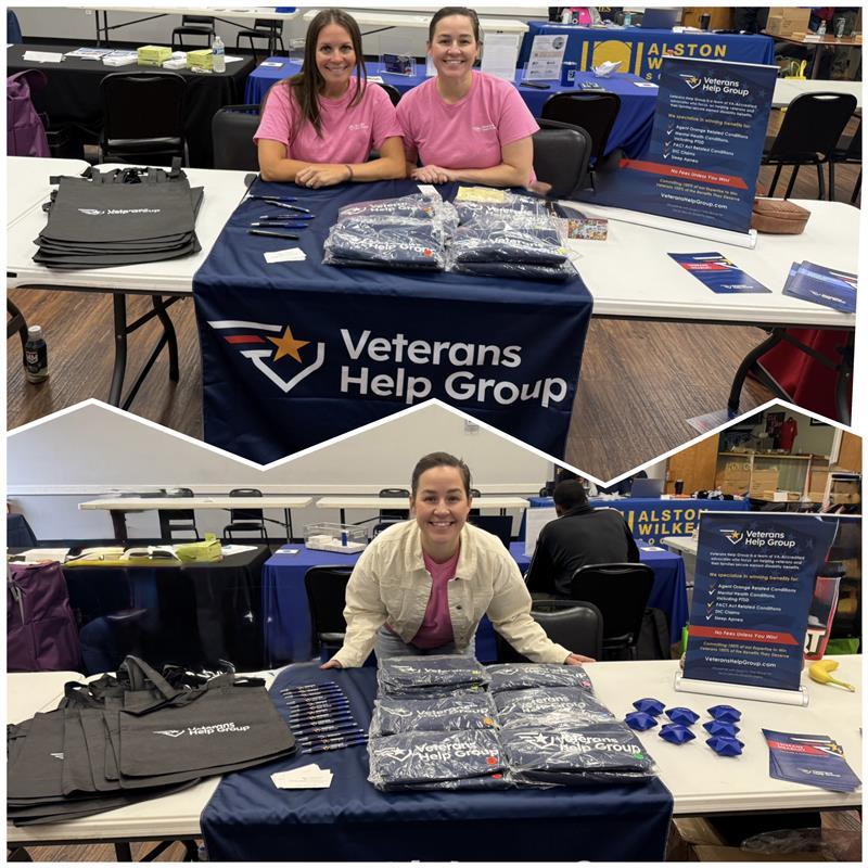 On October 17th, Senior Advocate Amy McArdle and Director of Community Outreach Bobbi Boudi attended the VA Stand Down for Homelessness in Myrtle Beach, SC. They built new community partnerships and connected with several veterans seeking assistance with their VA Disability Claims. Contact information was collected to follow up and determine how Veterans Help Group can support these veterans in their claims process. Amy and Bobbi ran into two of our VHG clients while at the event.
