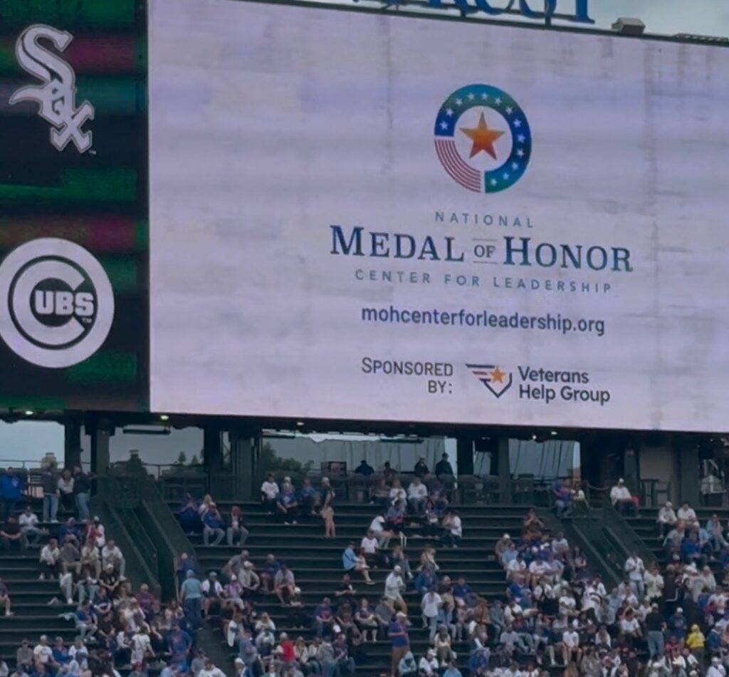 On May 17th, Veterans Help Group sponsored the National Medal of Honor Center for Leadership at the Chicago Cubs baseball game. The Cubs recognized two Medal of Honor recipients at the game and celebrated Armed Forces Day with fans.Â