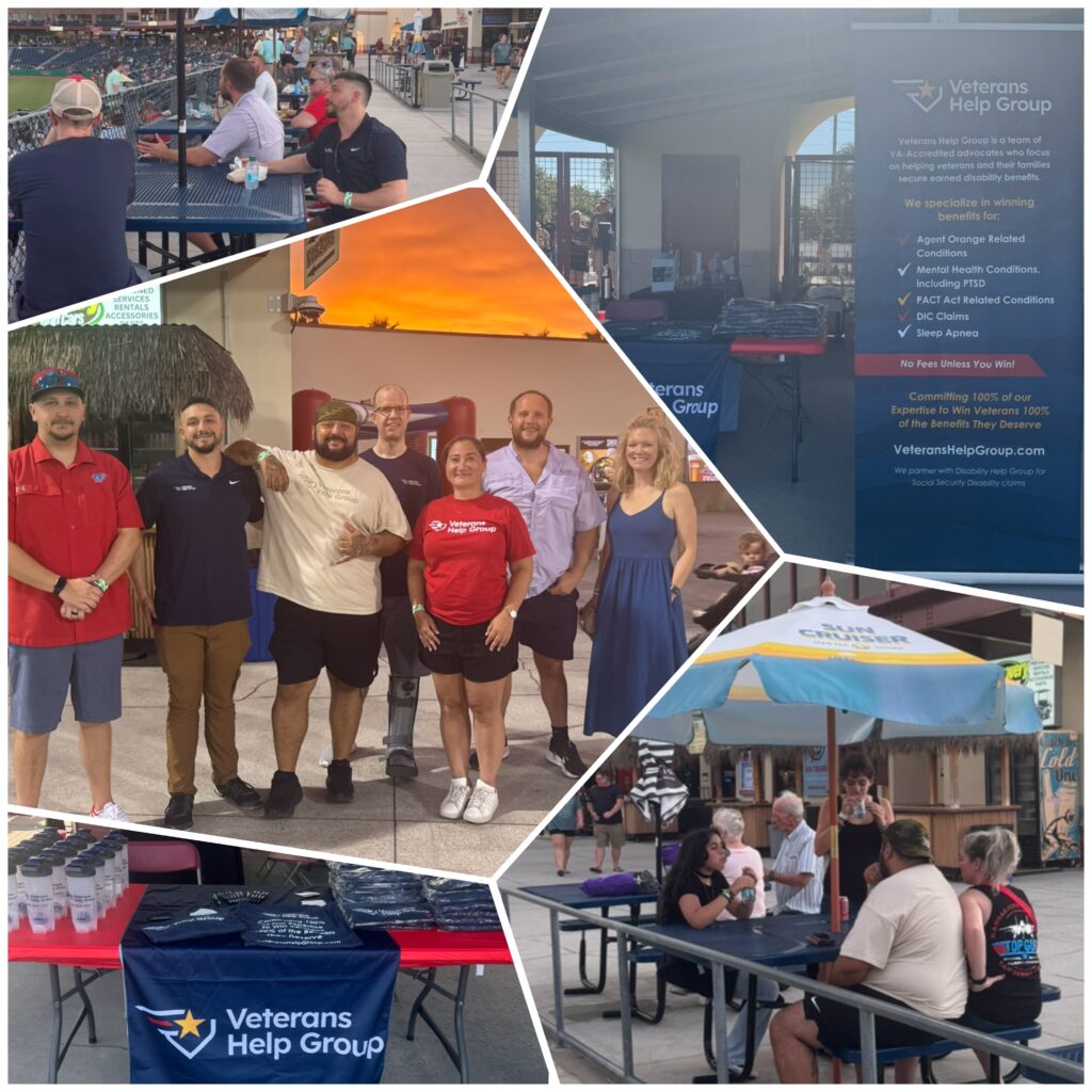 On August 15, 2025, Veterans Help Group proudly sponsored field box tickets for Veterans, as well as Active and Reserve service members, at the Veterans and Military Appreciation Night hosted by the Clearwater Threshers. At the event, we set up a table where we distributed T-shirts and other promotional items while also providing veteran consultations. The evening was further highlighted by the Threshers’ pitcher throwing a no-hitter, making it a truly memorable experience. Our team enjoyed the game alongside their families, creating a fun and engaging atmosphere for all involved.